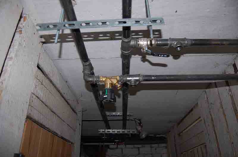 Viljandi 8, Käru. Keldrisisese tarbevee magistraali ja püstikute vahetus.
